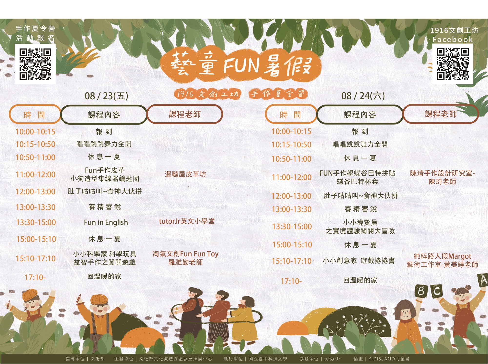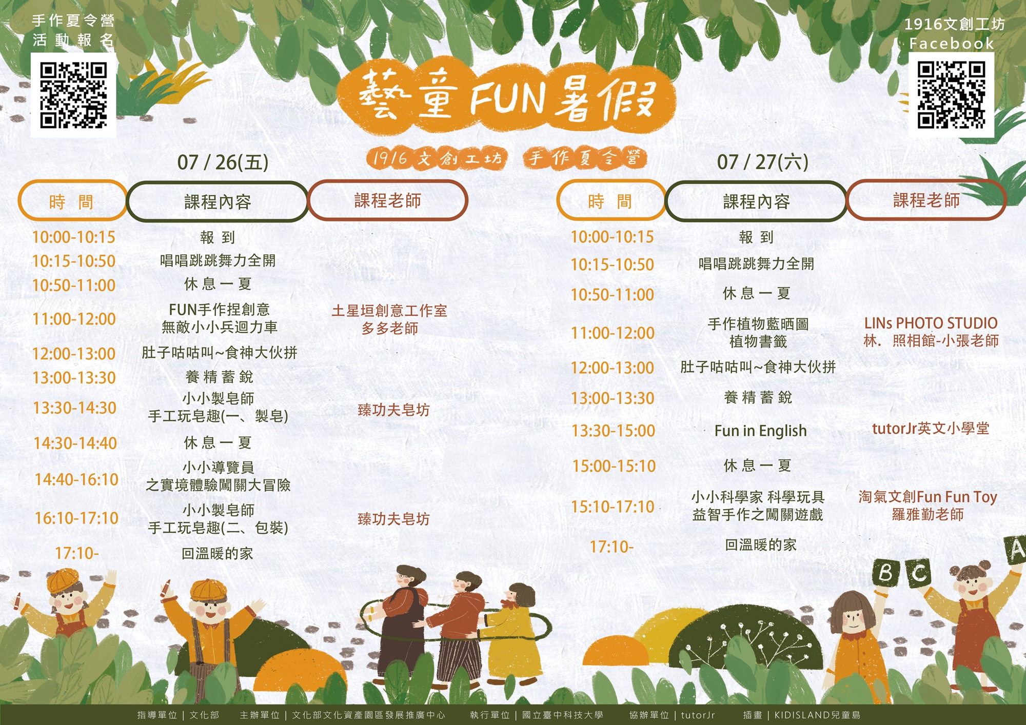為了讓小朋友在一年一度的暑假,能夠盡情揮灑汗水與創意,1916文創工坊特別舉辦了3個場次的"#藝童FUN暑假!!手作夏令營",將會帶著孩子DIY、闖關卡、學英文、玩遊戲,讓我們在酷熱的夏天展開一場手作的奇幻冒險吧!🏃♂️🏃♀️