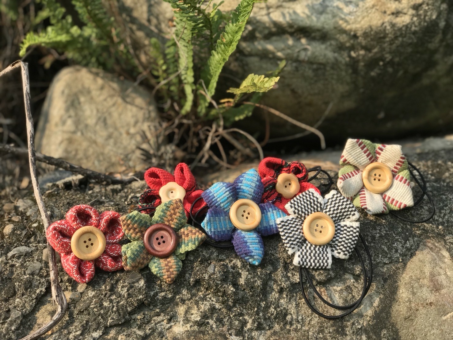 過程與得來不易,而珍惜這些織品的誕生,製作織作裝飾品,頭飾、髮圈、化妝包、背包、