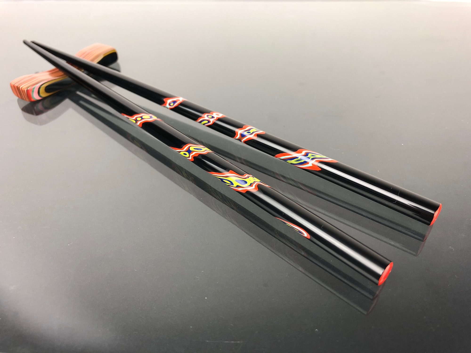 與以往的彩繪課程不同,課程中使用水砂紙將已完成繁複塗裝的漆筷層層色澤磨顯,自己設計喜愛的圖案,細細研磨後將漆筷拋光即完成。好的漆器經過細膩研磨拋光後就能感受其溫潤的光澤和柔順的手感。漆筷經塗裝保護,不易浸水,且有耐溫、抗菌的優點,最適合隨身攜帶,當成環保筷使用,在外用餐若無水源可清洗,亦可以濕紙巾稍微擦拭,陪你南征北討到處吃。