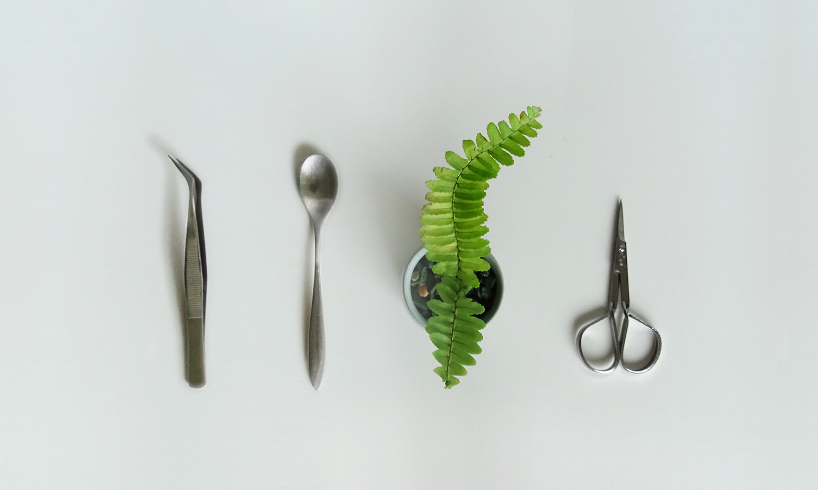 我們精心挑選最適合室內種植的蕨類植物,讓學員能以最簡易乾淨的方式,親手進行修剪、配土、選擇盆器、植物入盆、鋪石配色的種植過程。