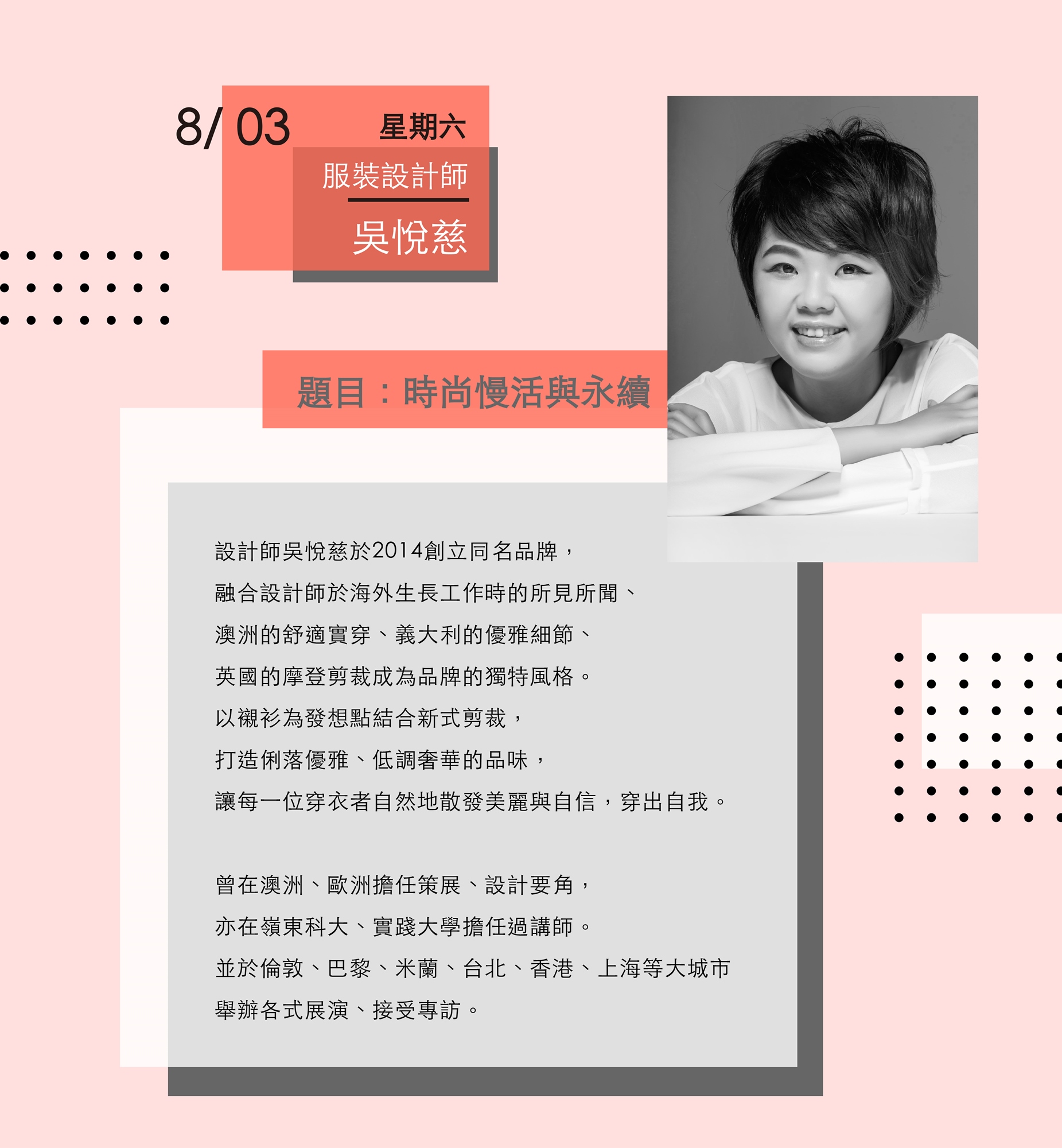 歷,分享從學生時期到初入社會磨練後,再到品牌經營模式與鎖定的目標客群,做一次完整