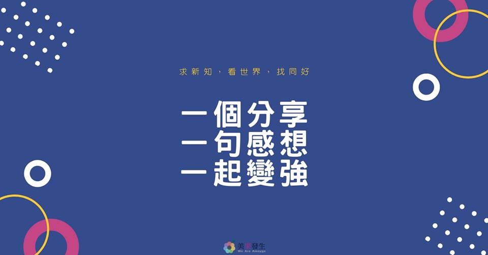 無論你是上班族、接案工作者、學生還是老闆、退休族。這世界資訊太多,變化太快。分享你看到覺得很棒、很值得分享的影片、文章、一段話。說出你的感想,一起分享,一起變強!