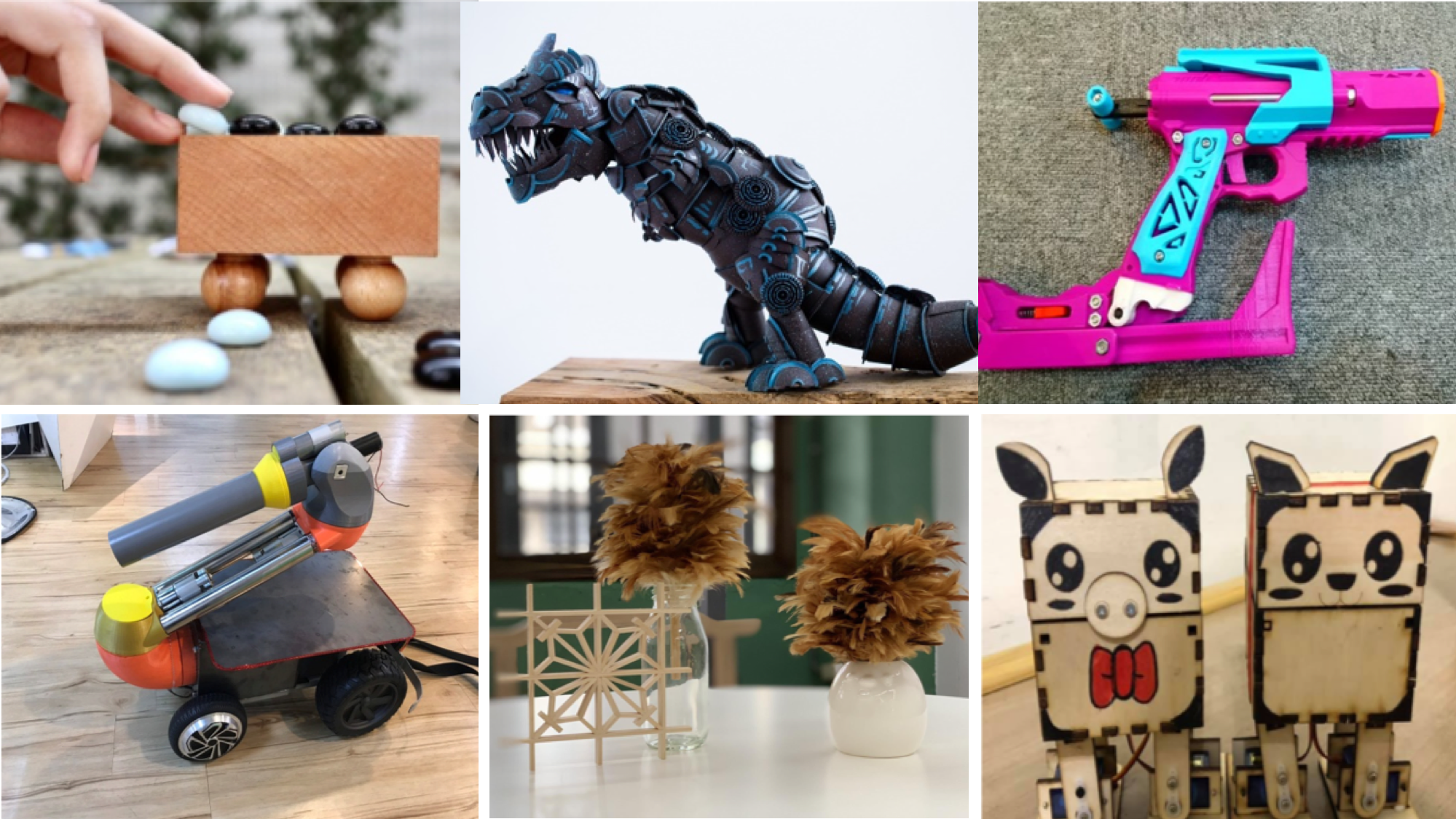 下排由左至由:香菇寮多工機器人、木藝花窗、OTTO 機器人)