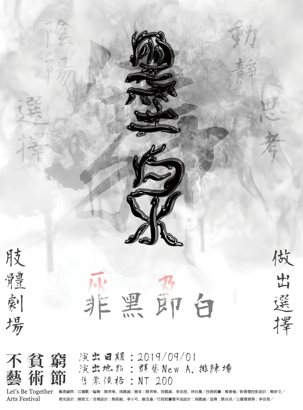 墨泉從二元對立這個主題出發,利用一動一靜截然不同的舞蹈形式以及投影、燈光的巧妙對比,在空蕩蕩的黑盒子裡建構一個魔幻的場域,讓您享有近五十分鐘如雲霄飛車般兼有刺激、放鬆與衝擊同時在心底碰撞交織的心靈饗宴。在這個非黑即白的世界裡有著關乎宗教、性別、人性等不同的路,而當你在探索並行走在這條自我思辨的旅途的同時,也走上了選擇的岔口,而您的選擇,將會和我們一同補滿這個原先就非黑即白的世界。