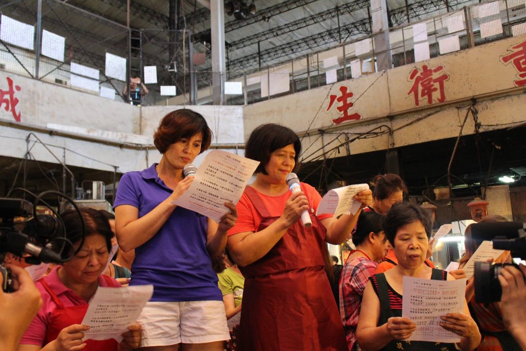 2016年9月11號是買菜幫最後一次在舊建國市場舉辦,這一天來了特別多人,因為這一天將會有「特殊」的活動─「頭家娘的歌唱快閃」。