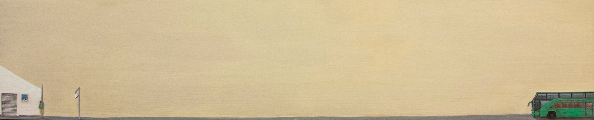 黃姿瑜創作前會經由實地走訪,拍下隨處可見的台灣風景,再使用壓克力顏料繪製於木板上來進行創作,使作品承載著台灣人的共同回憶。她的作品也刻意運用寬幅尺寸,如同電影中的畫面,藉由作品擺放的順序,彷彿跟著畫面中的主角在道路上一併同行、慢慢移動,引導觀者將視覺向前延伸。除此之外她也試圖將自己投射在角色之中,獨自騎行著機車,不確定下個路口該往左還是往右?只能朝著疑似目標的方向邁進,似有若無間,反而更令觀者有意無意的逼近凝視,形成她獨特的創作風貌。