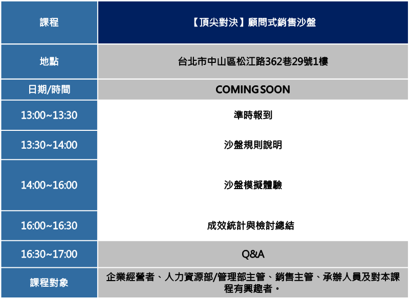 - 課程中直接建立公司的銷售模型與培訓地圖。