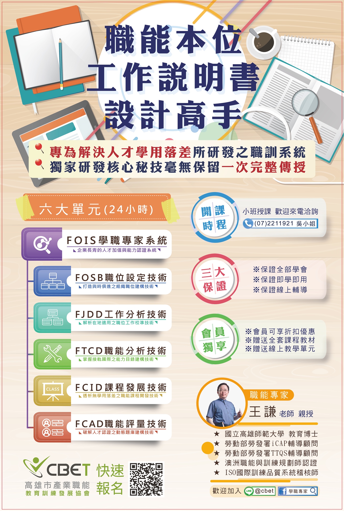 習得「FOIS學職專家系統」之FOSB、FJDD、FTCD、FCID、FOAD五大技術模組的