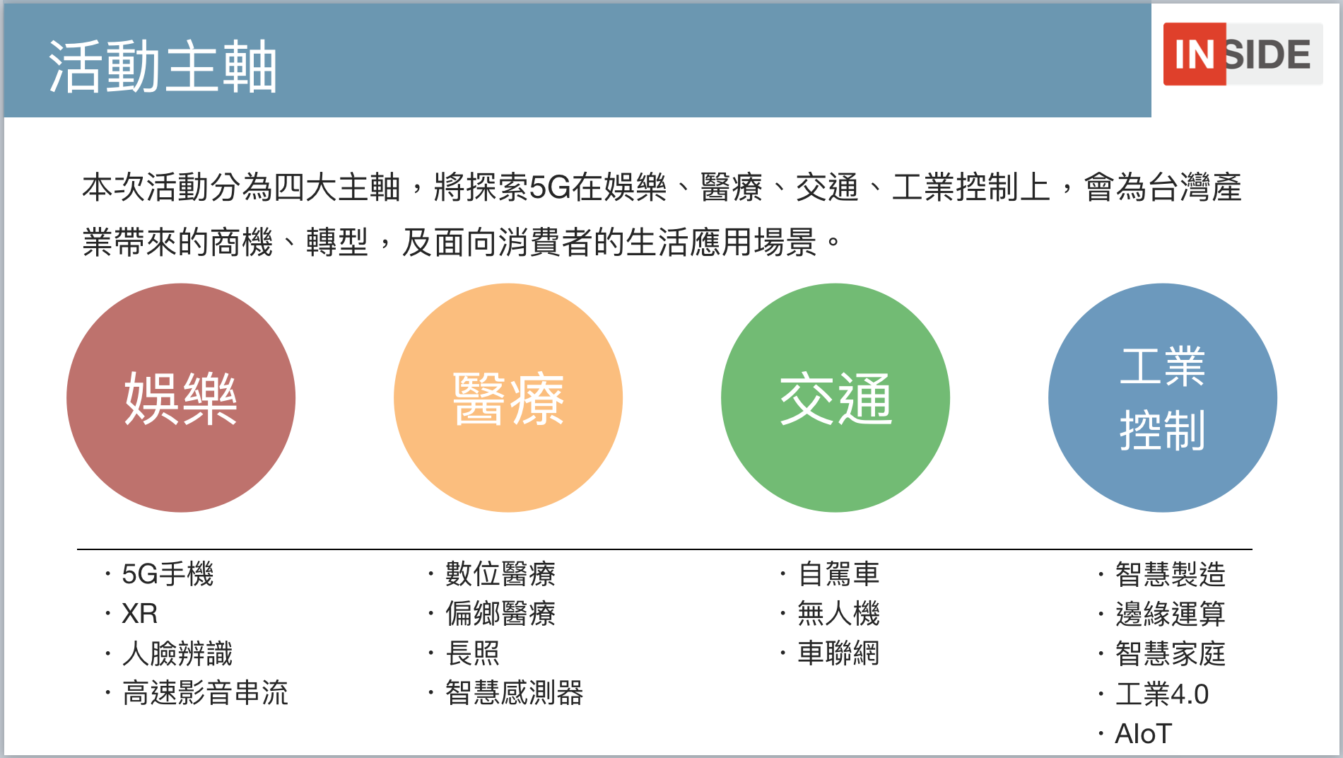主要聚焦在產業,主軸會放在 5G 對「台灣產業」帶來的影響