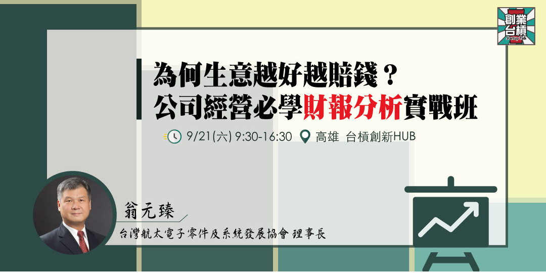 9/21(六)【經營管理】為何生意越好越賠錢?公司經營必學財報分析實戰班