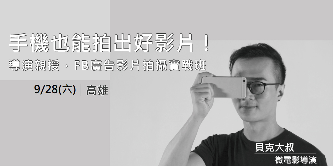 9/28(六)【數位行銷】手機也能拍出好影片!導演親授,FB廣告影片拍攝實戰班