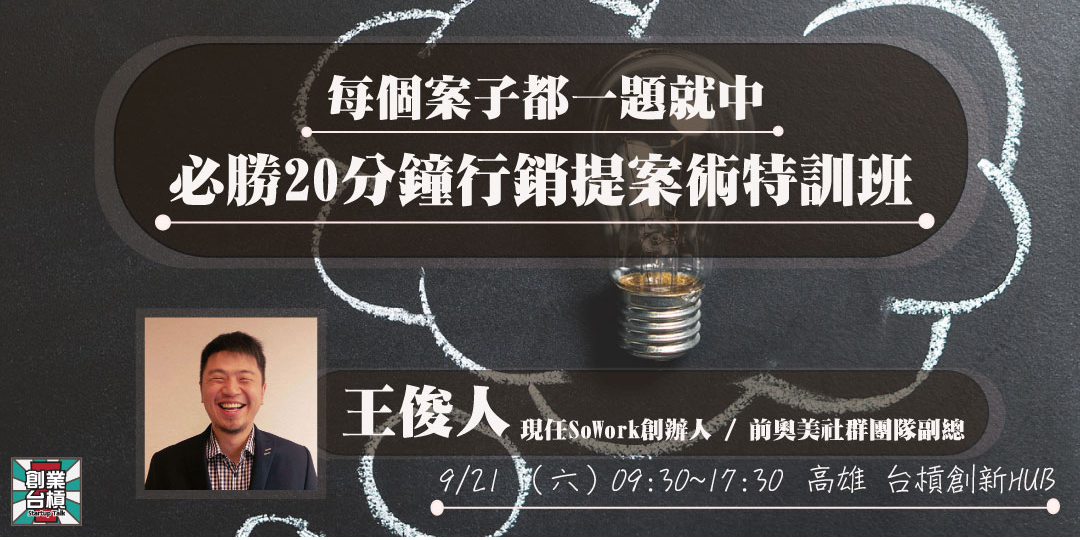 9/21(六)【行銷企劃】每個案子都一提就中!必勝20分鐘行銷提案術特訓班