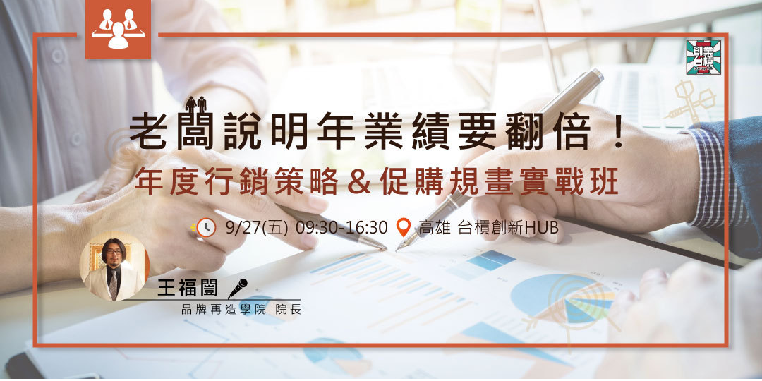 9/27(五)【行銷企劃】老闆說明年業績要翻倍!年度行銷策略&促購規畫實戰班