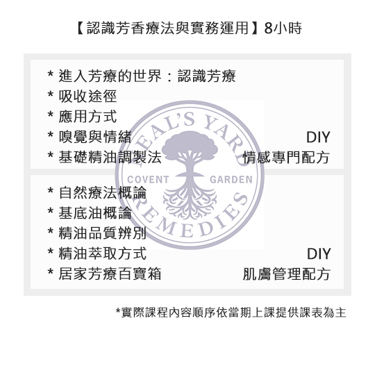 課程符合NAHA及IFPA認證標準。學員完成各階段修習並通過考核後,即可取得NAHA芳療師認證。