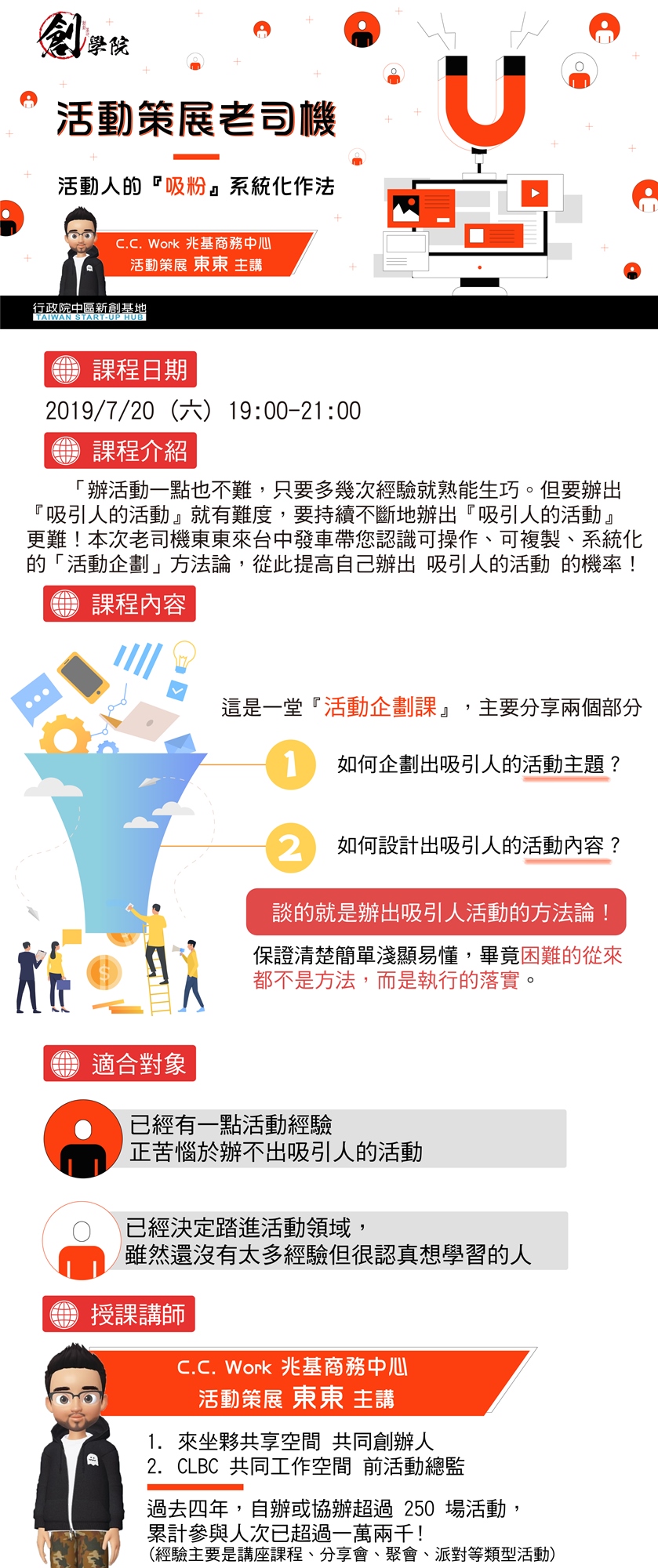 7/20 【創學院】活動策展老司機:活動人的『吸粉』系統化作法