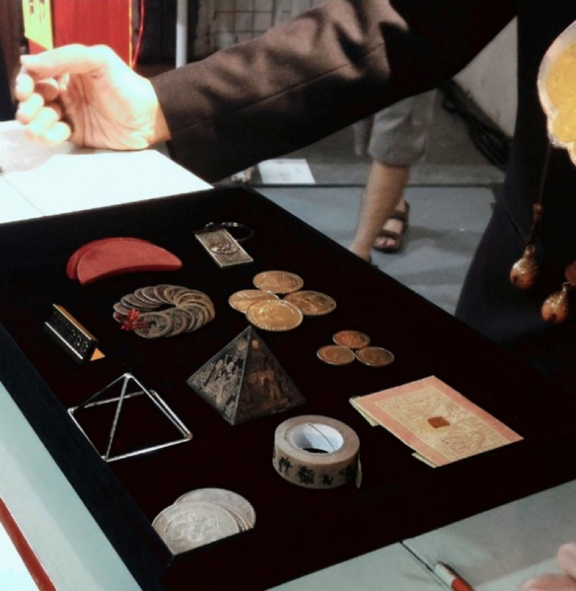 自開發的擇物占卜「擇物取數」將數個具有象徵意義的物件展開,