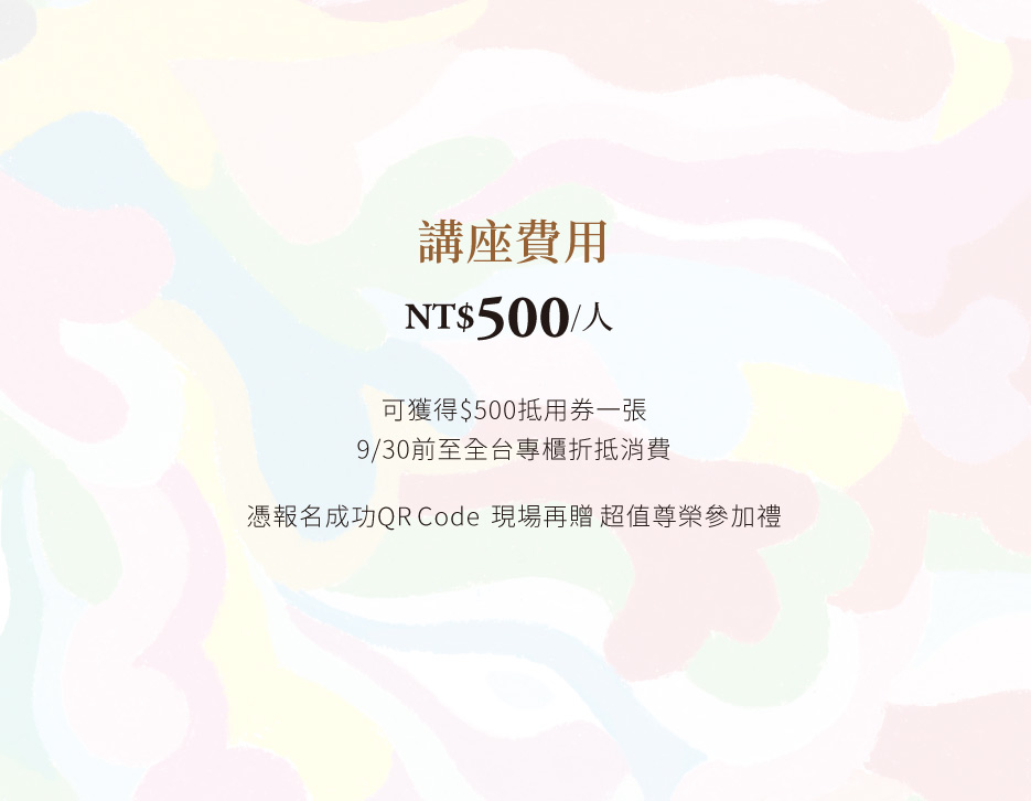 - $500折價券一張 (9/30前至全台JuliArt專櫃折抵消費)