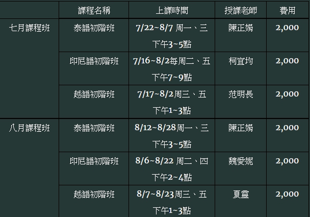 暑假東南亞語言班