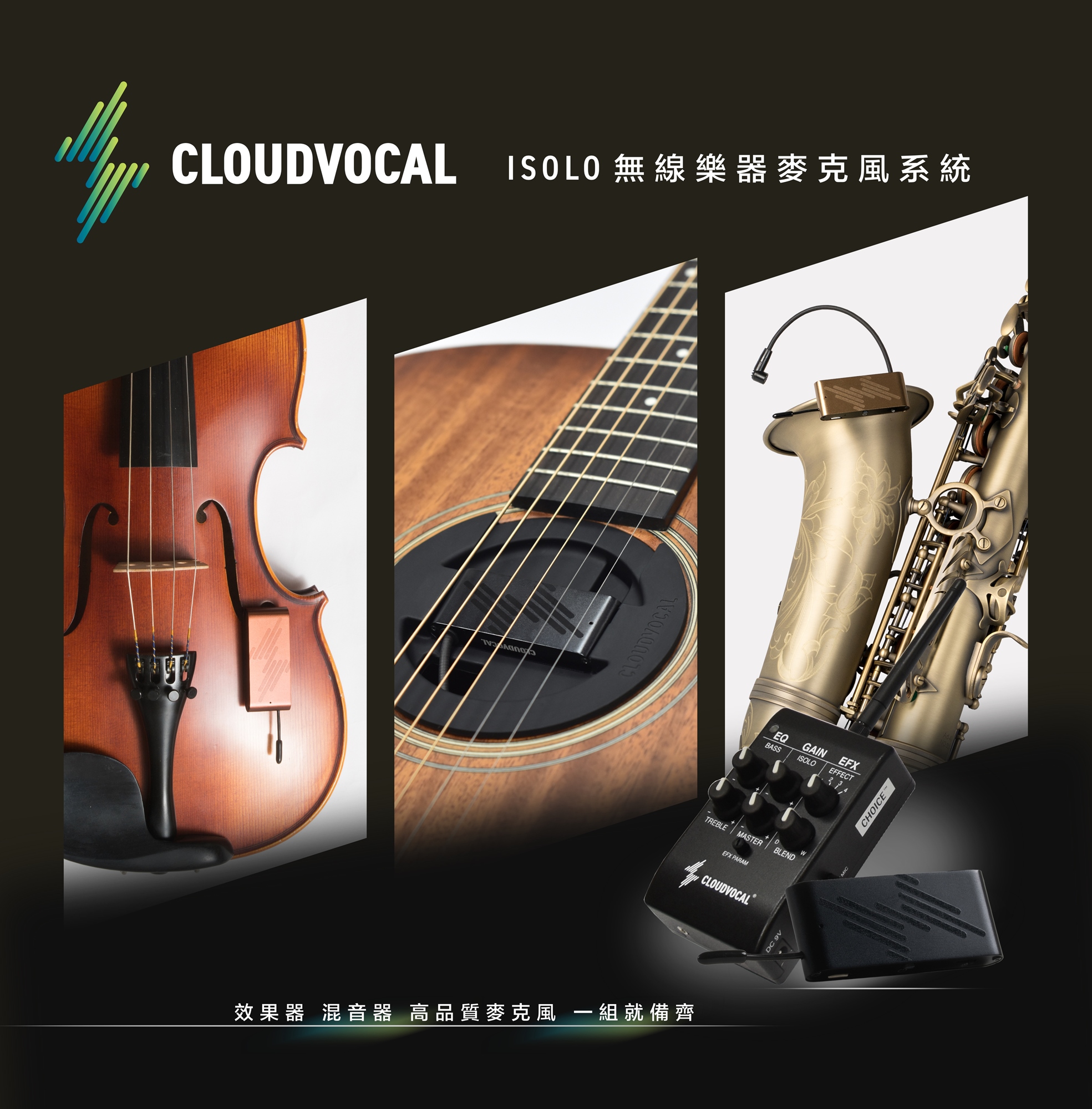 音樂是描繪情感與想像的細膩藝術,我們的任務就是記錄它的真實感動。CLOUDVOCAL團隊擁有多年無線音訊技術開發經驗,善用強大的無線傳輸工程專業,實現對音質的高度要求。研發過程中,我們進行不斷的音質測試、設計改善以及與樂手直接面對面做使用體驗的訪談,由多方角度切入,用心打造ISOLO無線樂器麥克風,期望解決樂手收音及錄音的困擾,專注成為創造精彩演出的最佳夥伴。
