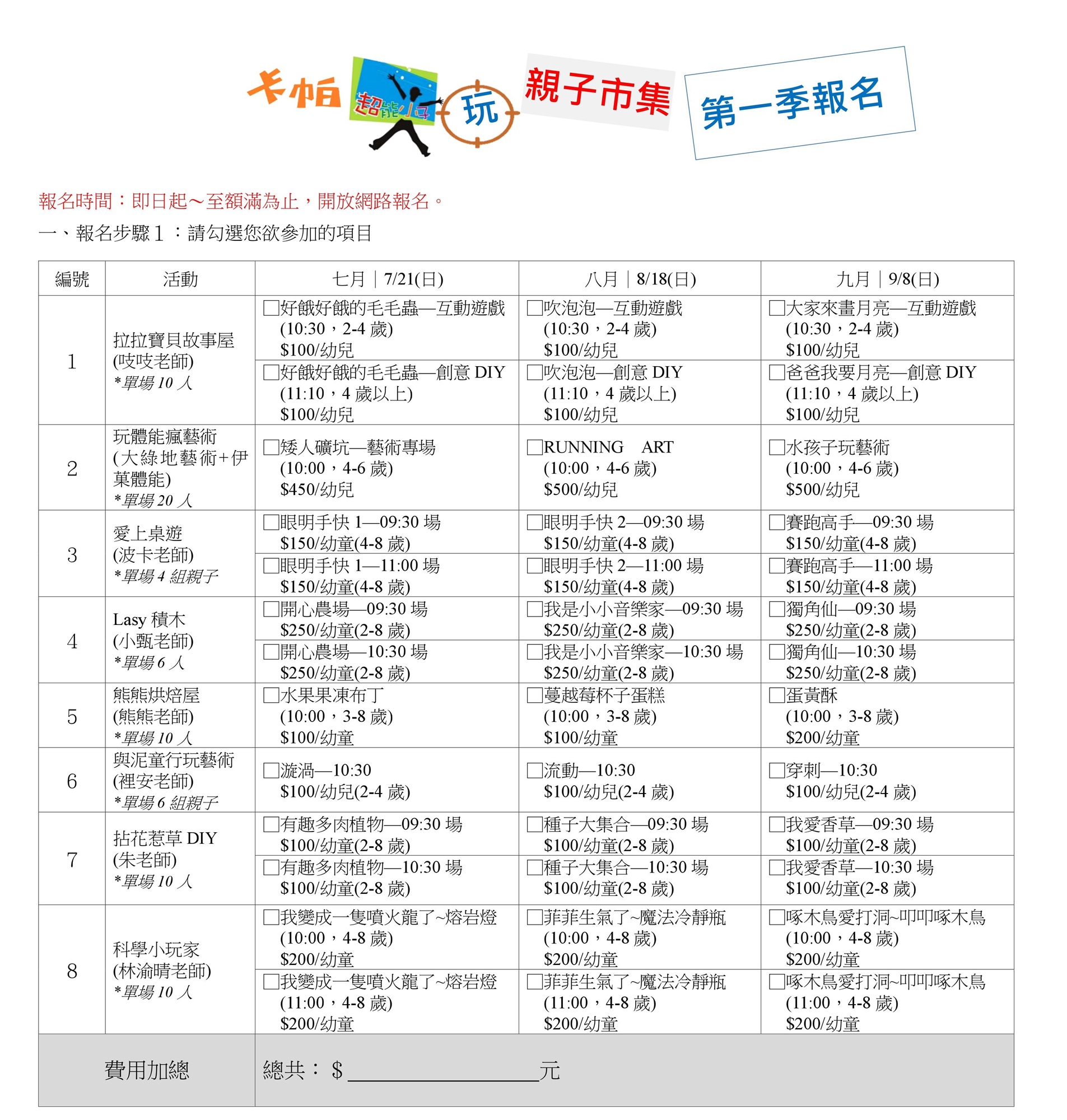 卡帕超能小子玩親子市集 第一季活動 熱烈招生
