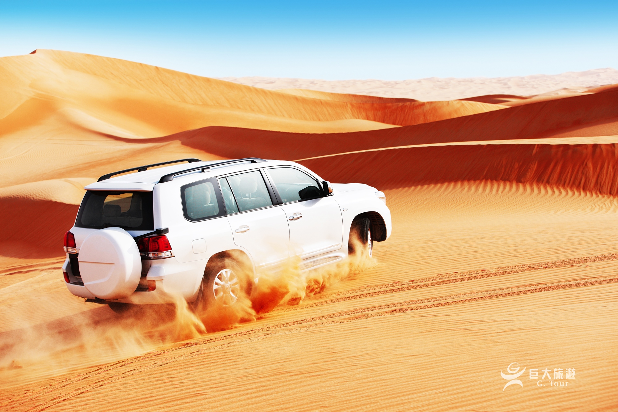 衝沙活動~體驗在金黃色的沙丘上下馳騁的極大樂趣和刺激。天色已近黃昏,向遠處望去,太陽正在徐徐下落,把無垠的沙漠烘托得更加不可思議。