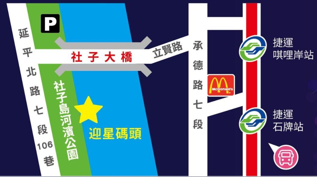 捷運石牌站 2號出口 ⇆ 社子島迎星碼頭