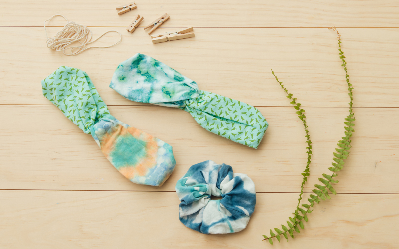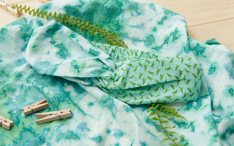 課程成品:髮帶1條、髮圈1-2個,手染布料(尺寸 : 45cm x 65cm 二塊)