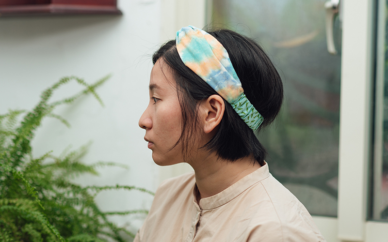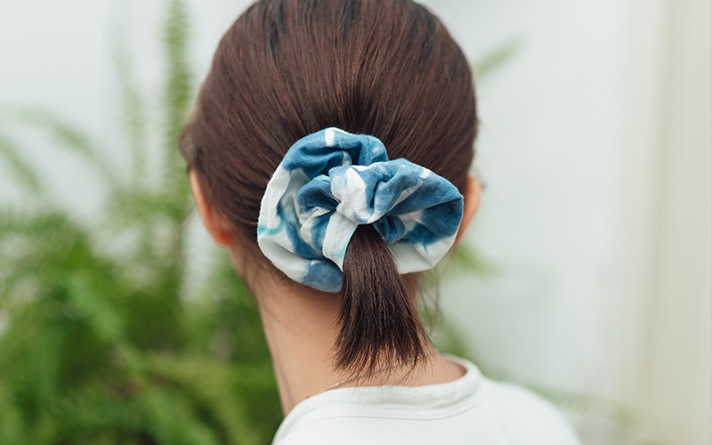 講師會引導學員以手縫完成髮飾品,以自己的印製的綁染布料製作,特別又好看!