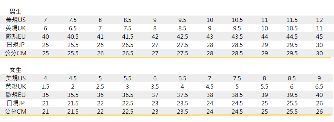 ● 踢踏鞋尺寸對照表|