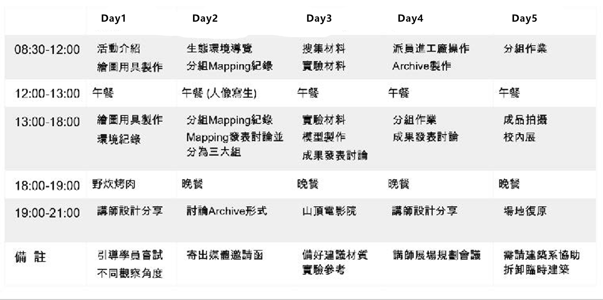 近年來歐洲的設計產業開始討論材料使用的在地性與合理性,開始鼓勵以在地性的方式來研發出一些符合當地人文氣候的材料與產品,我們希望也能在台灣的大學教育體系中吹起這股風氣,讓 學生去挑戰、去嘗試。結合我們在國外的所學以及對於學校的認識,我們有信心可以為華梵大學辦 一場與眾不同的工作坊,啟發學生的同時也創造一個只有華梵大學有辦法舉辦的課程,讓大家重新 用不同的角度來認識這間學校,這座山。