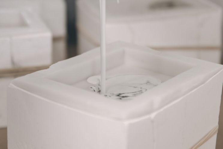 我們回收大理石的建築邊料,將研磨後的石頭粉末佐以些許樹脂。