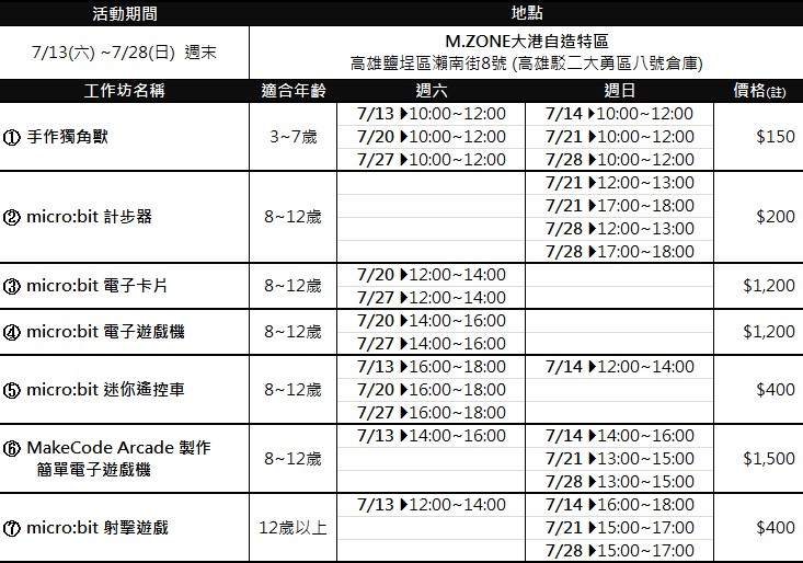 ▸課程地點:M.ZONE大港自造特區,高雄市鹽埕區瀨南街8號 (駁二大勇區8號倉庫)
