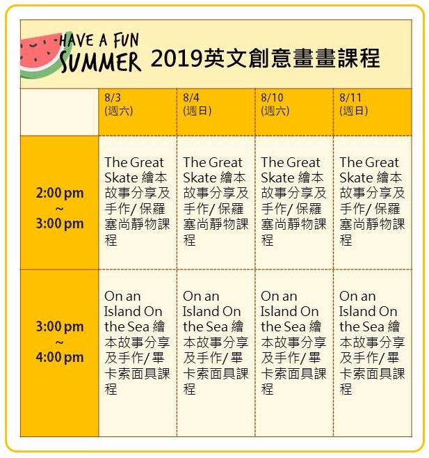 全程都會使用英文對話,將會進行面具製作或靜物繪畫,快來加入我們創造暑假滿滿的美好回憶吧~~