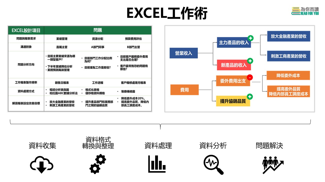 將得到為你而讀執行長Steve設計的Excel工作分析工具表單,本工具也會收錄在Steve的新書中,讓你獲得第一手的數據分析工具與高效職場工作術。