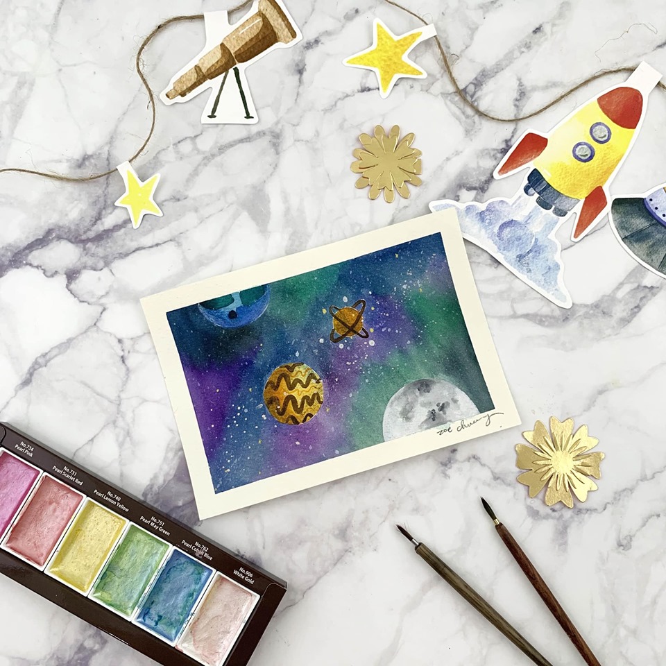 那麼來加入我們畫一幅宇宙星球的創作吧!