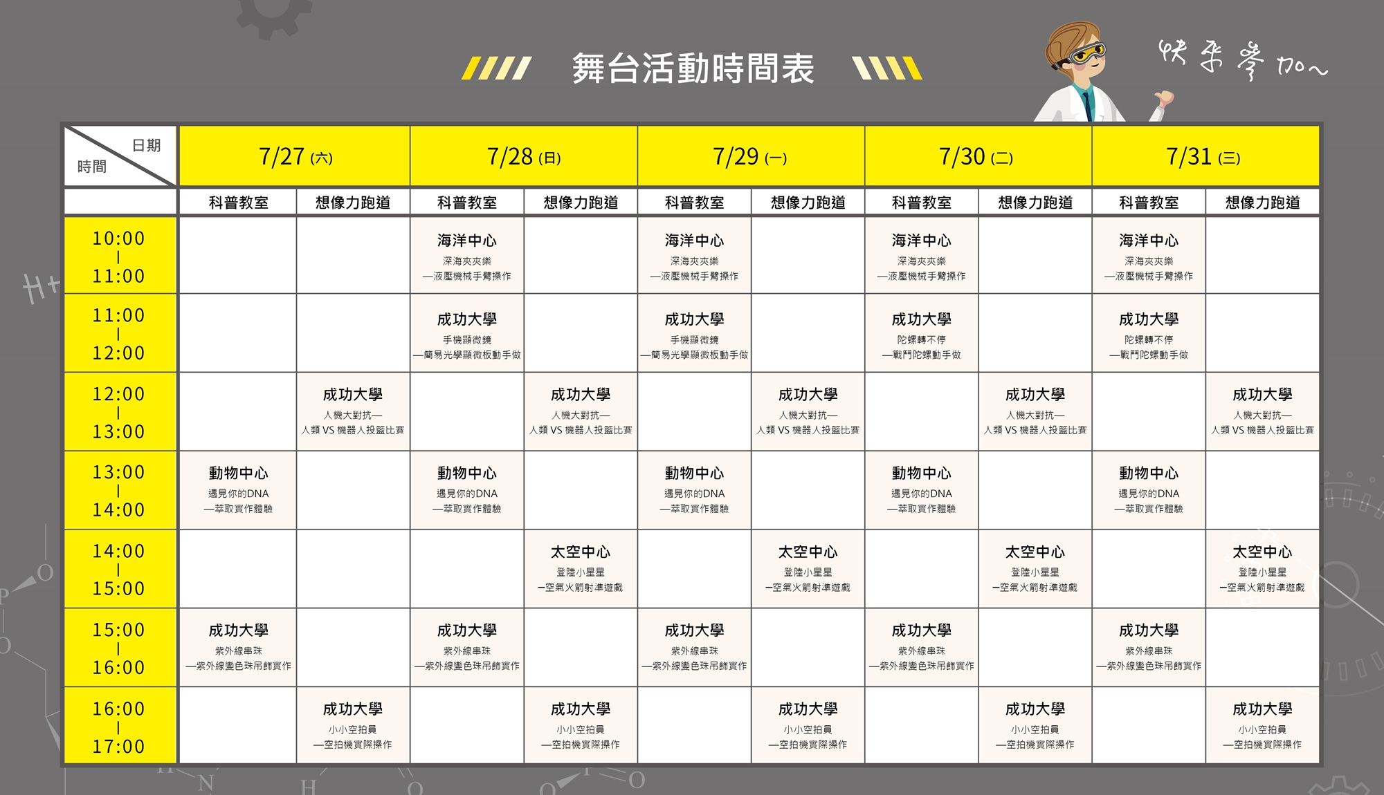 【活動日期】:7/27(六)- 7/31(三)