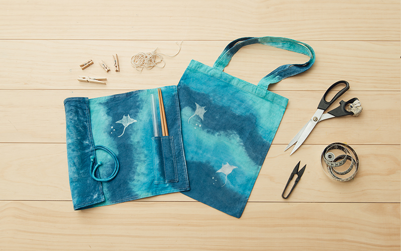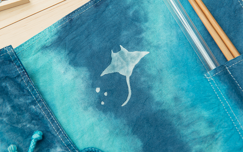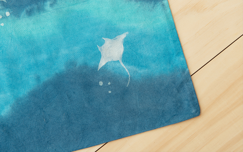 課程中還可以完成簡單的海生物型版,以染色打造自己的海洋世界。 這是由染師學習各國手染文化後,整理出的精華工作坊,從認識染材、染紋構成、綑綁、上色、製作型版到完成作品,一步一步完成專屬於你的染織作品。