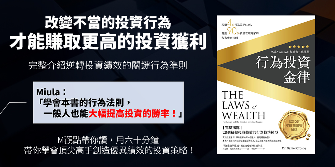 在這場 「M觀點帶你讀:行為投資金律 導讀會」中,Miula 將親自系統化拆解與整理本書的核心概念,並結合個人豐富的實務經驗分享,帶領你徹底讀懂本書的精華。用短短的60分鐘告訴你如何將本書所提到的行為獲利法則,精準地應用在市場投資中,讓你能用正確的投資觀念與選股策略,持續為自己創造出優異的投資績效,在激烈的市場競爭中脫穎而出。