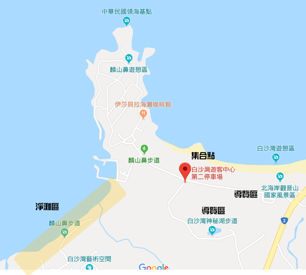 報到點:新北麟山鼻-白沙灣遊客中心第二停車場(新北市石門區德茂里下員坑33-6號)