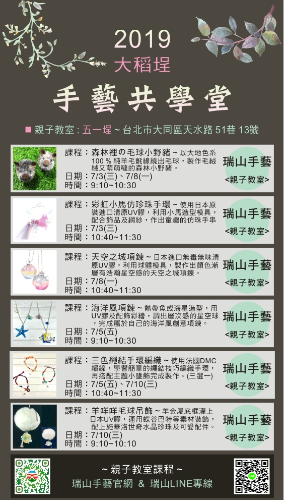 ※ 聯繫單位 : 瑞山手藝 02-25508715 或 LINE
