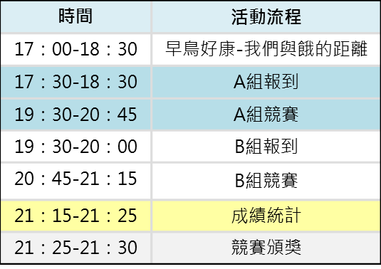 (二)活動時間:17:00-21:30 (17:30參賽選手報到)