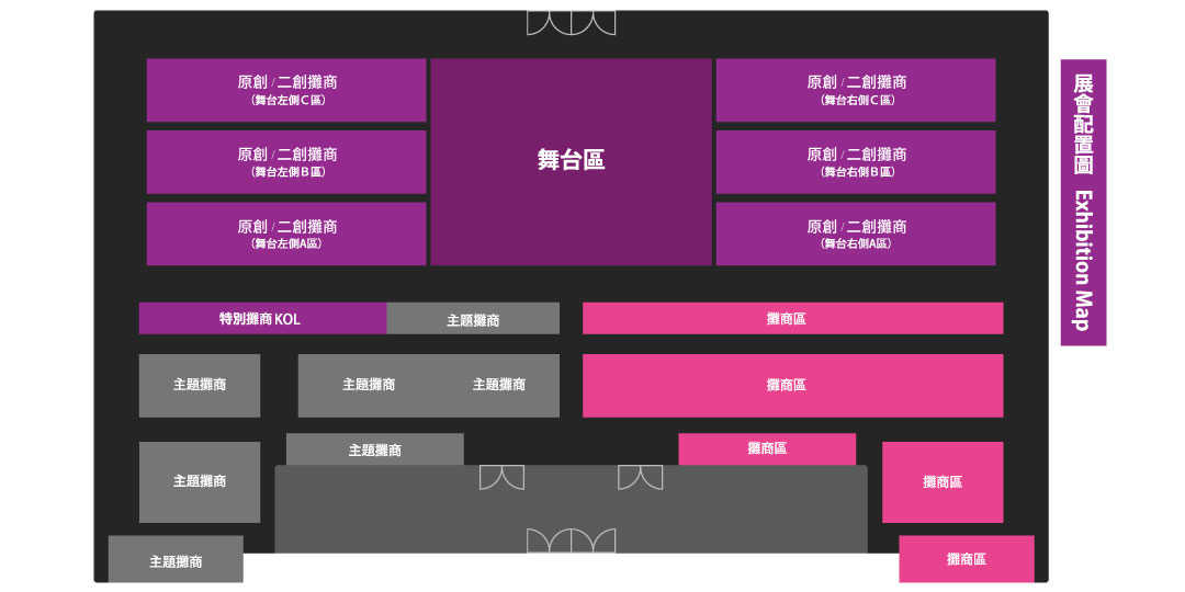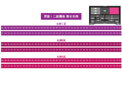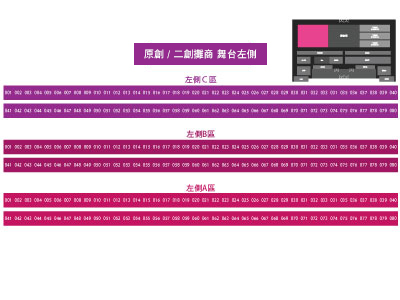 - 活動攤商分為舞台左側與舞台右側,請於報名頁面進行攤位分區選擇。(Ctrl+可放大展會攤商示意圖)