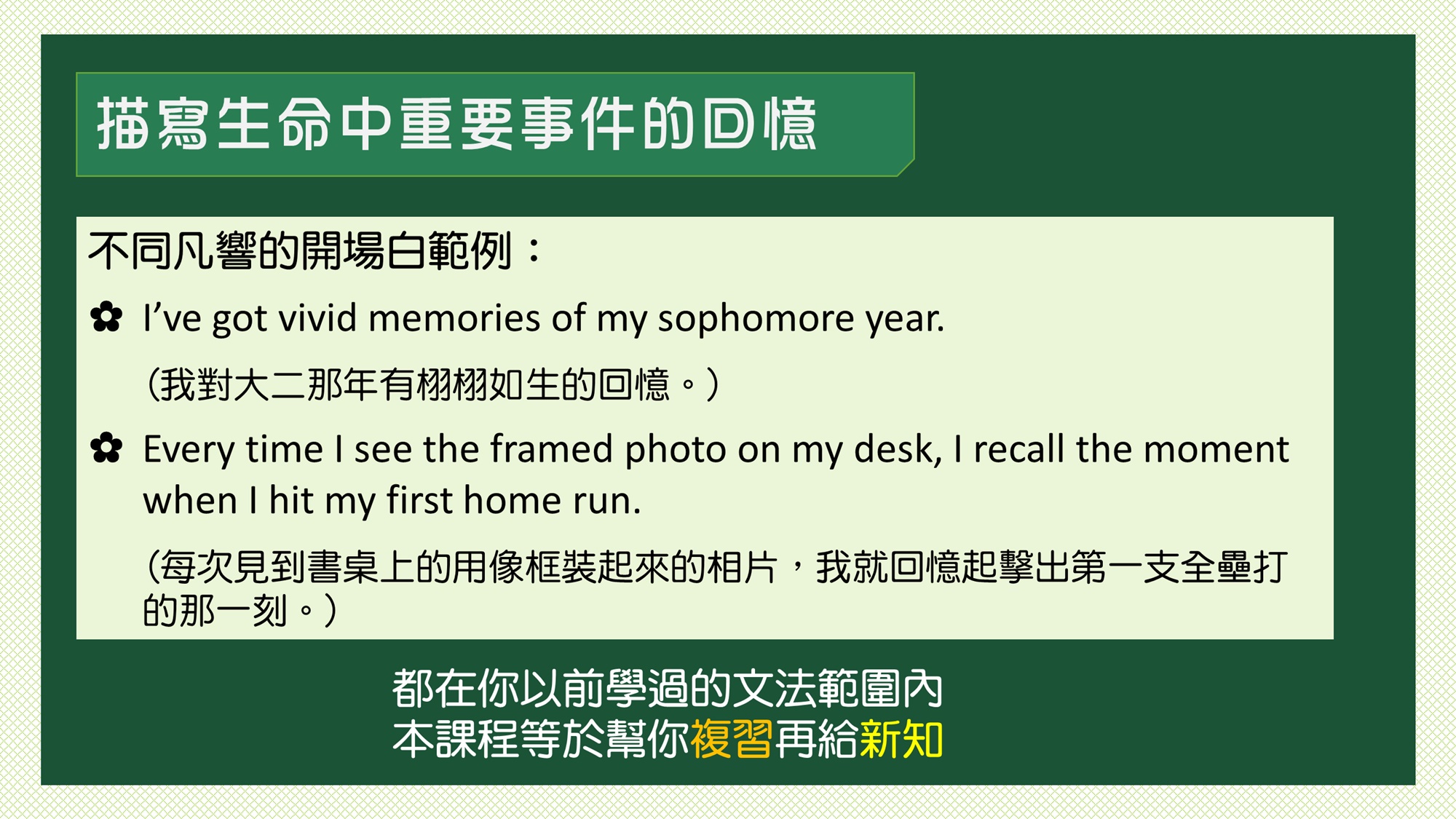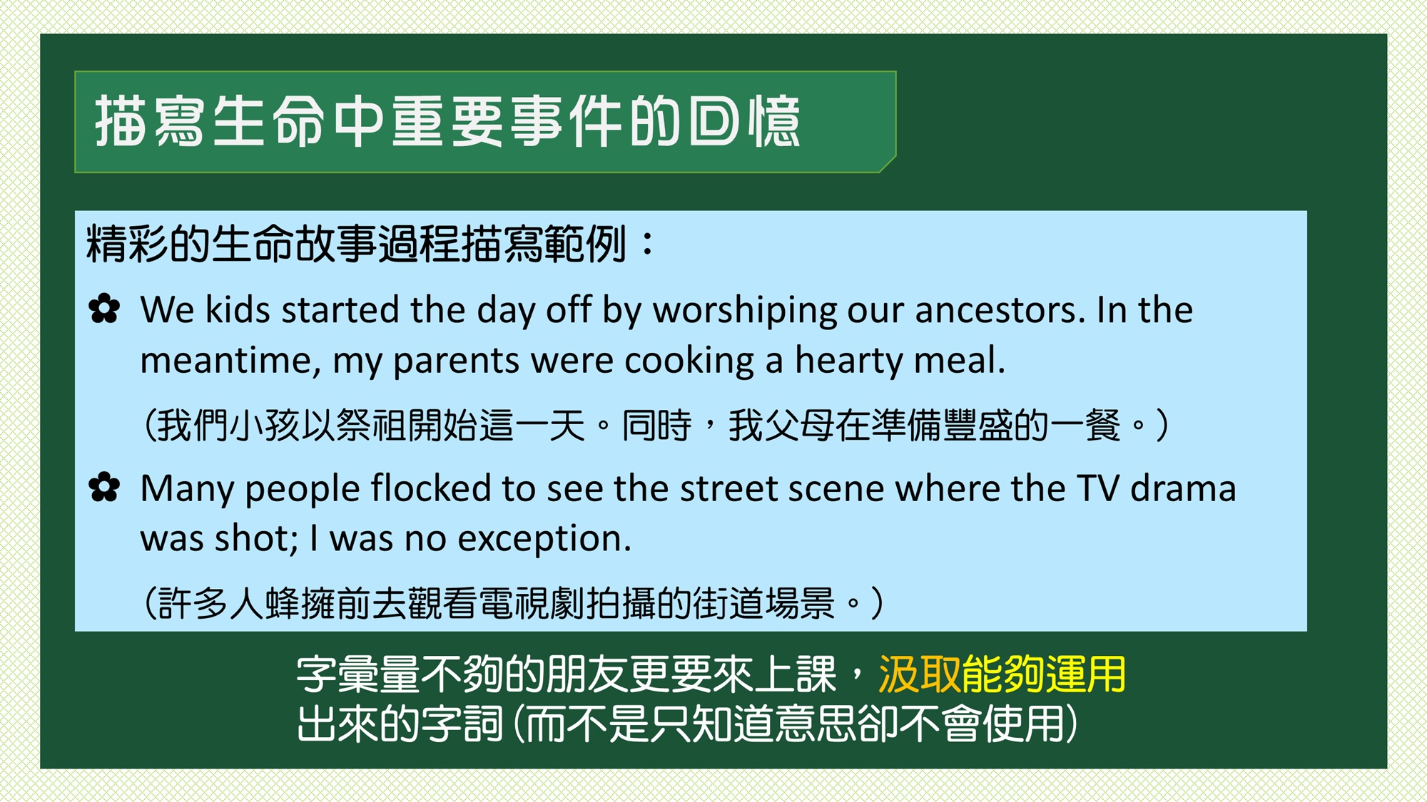 【台北】用英文說寫精彩的生命故事:生活經歷表達一對一工作坊
