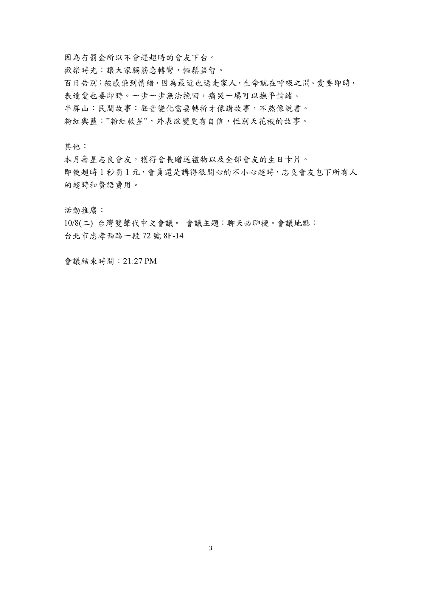 1. 每次開會時間?