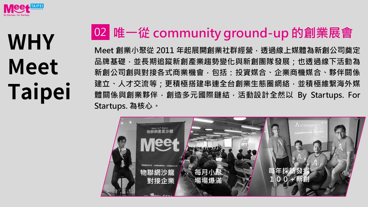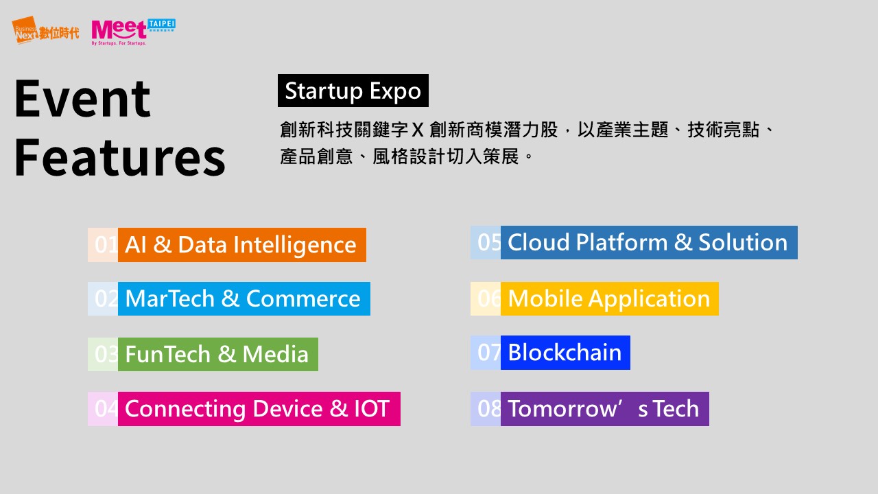 ※ 新創參展洽詢: (02)8773-9808 ext.201 林先生|ext.232 江先生 |來信洽詢 meettaipei@bnext.com.tw