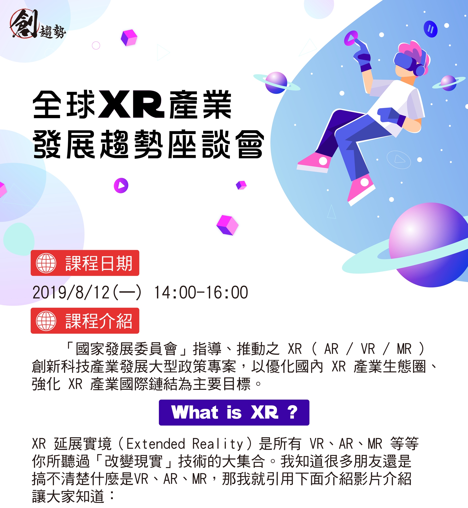 8/12 【創趨勢】全球XR產業發展趨勢座談會