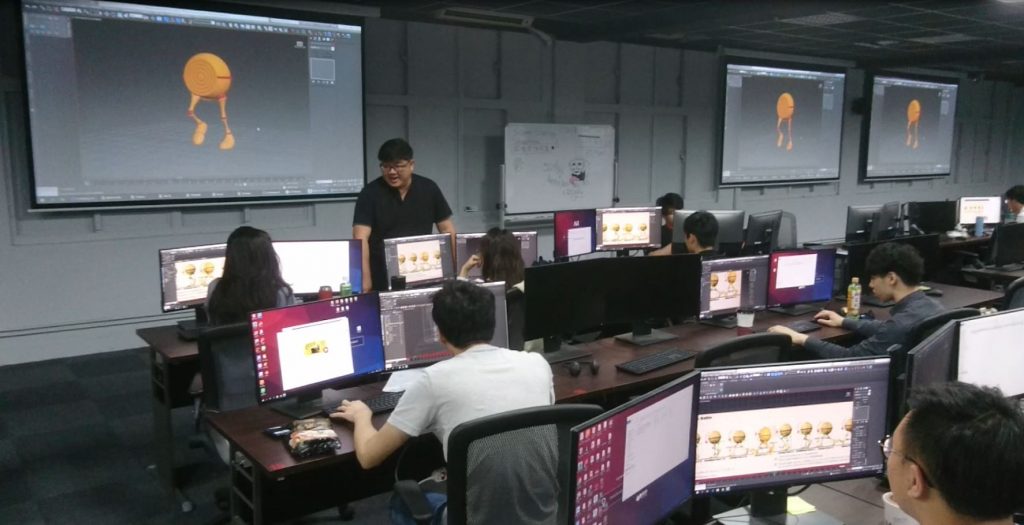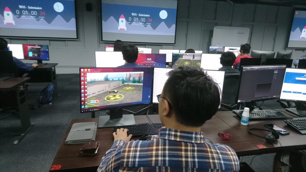 在參觀日中,您將可實際參觀本校之教室之先進教學與 AR/VR 設備。教室共有50個座位,學生所使用之電腦皆為工作站等級並搭配雙螢幕,讓所有學生都能在強大的電腦效能支持下完成各項內容開發。同時,本校提供全台最完整的AR/VR設備,學生們在內容開發中可在各個裝備上做實績測試,可做最精準到位的內容調校以及成果 Demo。