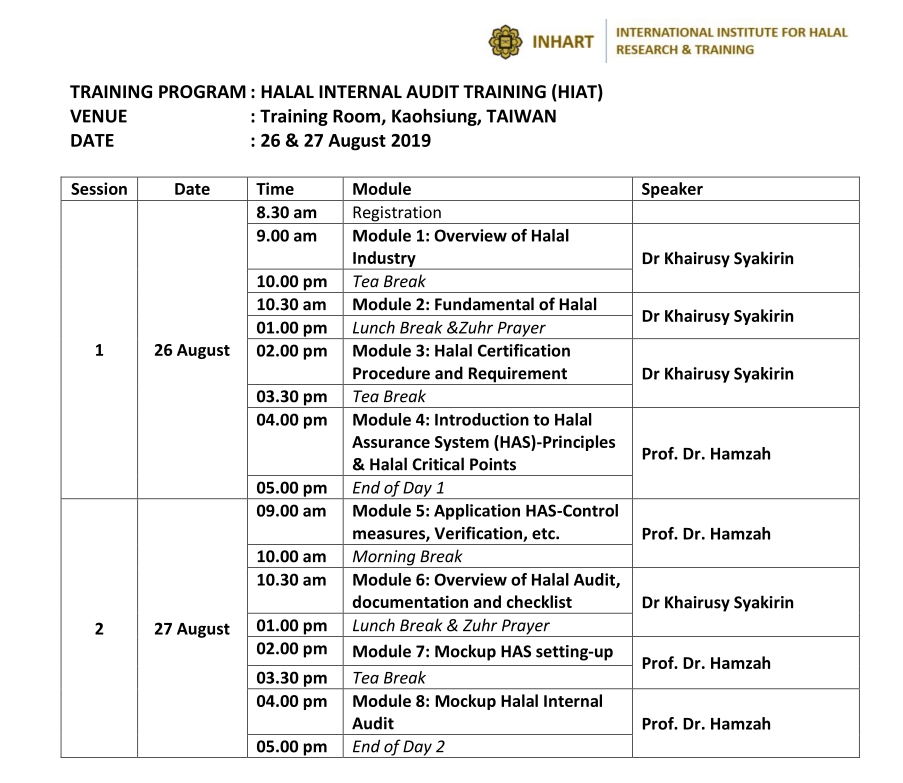 1. 費用每人6,000元,費用包含兩日訓練、中文教材、受訓證書、清真便當。請報到時繳交現金。