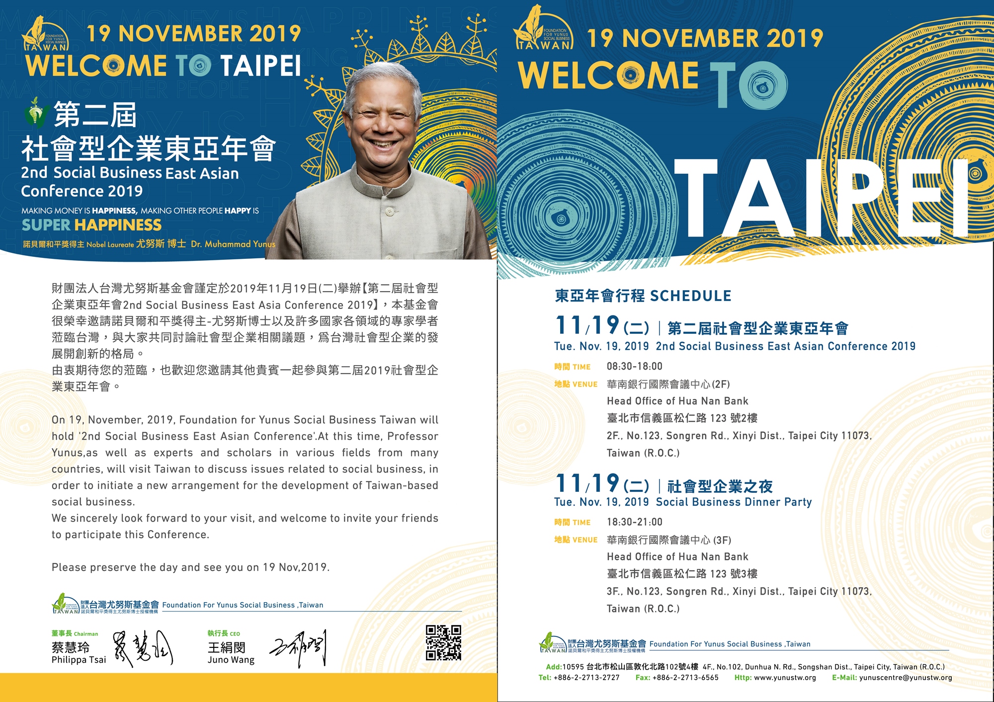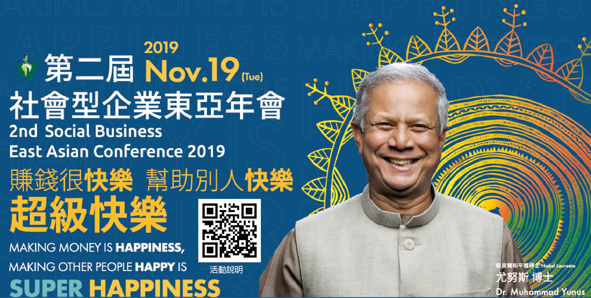 The 2nd Social Business East Asian Conference will be held on November 19, 2019. Professor Yunus, as well as experts and scholars in various fields from many countries will visit Taiwan.