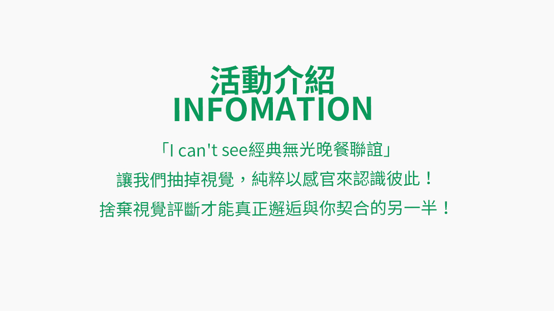 DATEWithMe《無光晚餐 X 經典聯誼》I cat't see!讓我們關掉電燈 純粹地以感官來認識彼此!